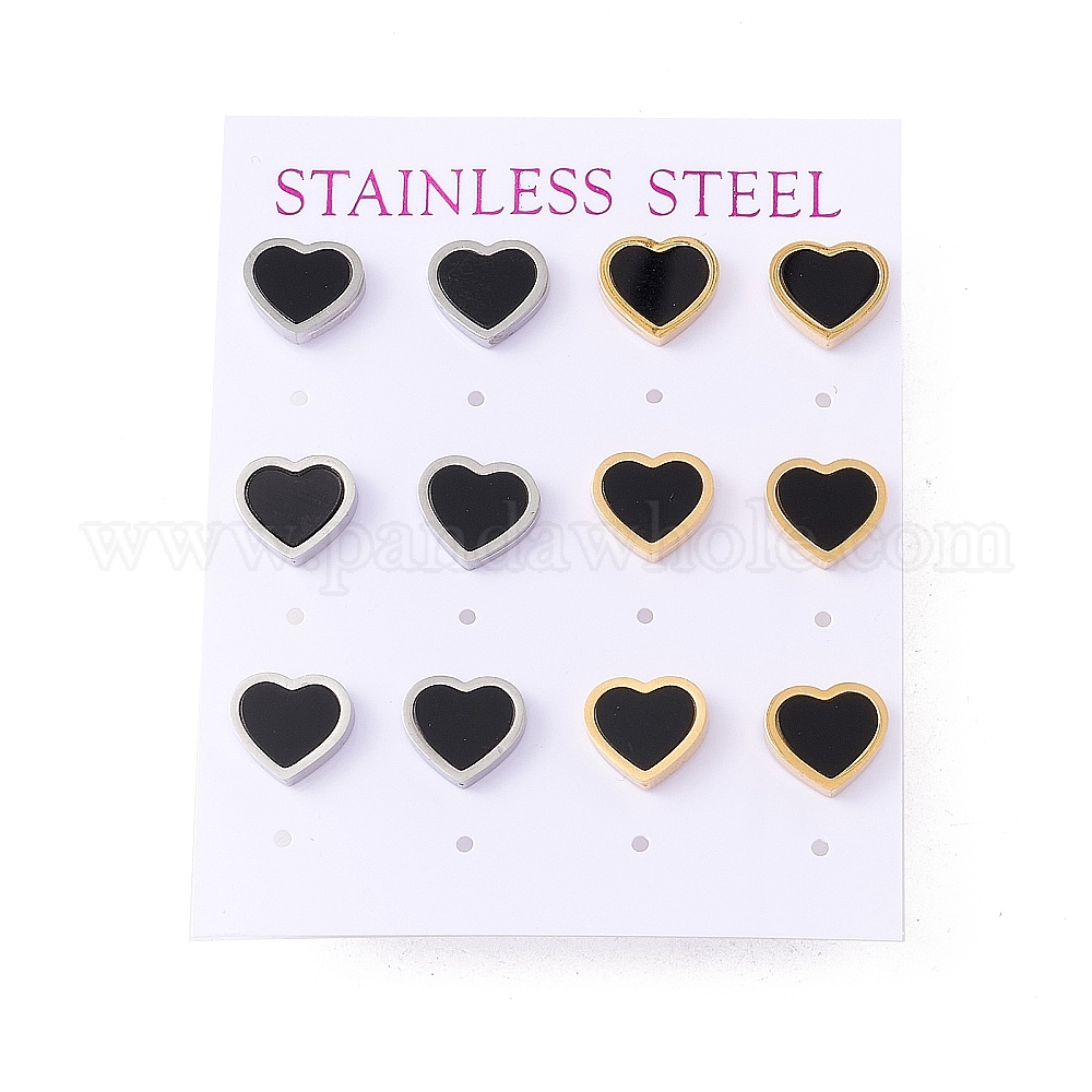 Черные акриловые серьги-гвоздики в форме сердца, 304 женские украшения из нержавеющей стали (02DJZS)