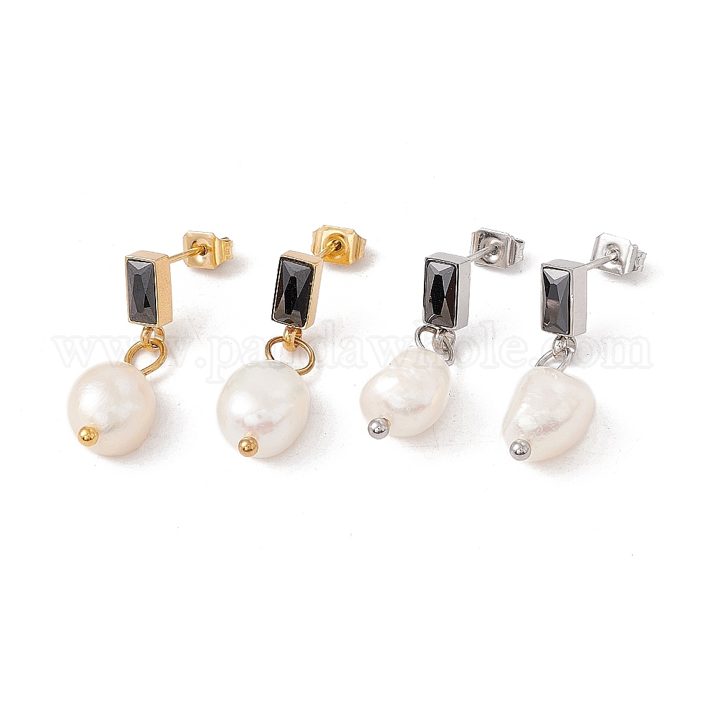 Прямоугольные серьги-гвоздики со стразами и натуральным жемчугом, 304 женские украшения из нержавеющей стали