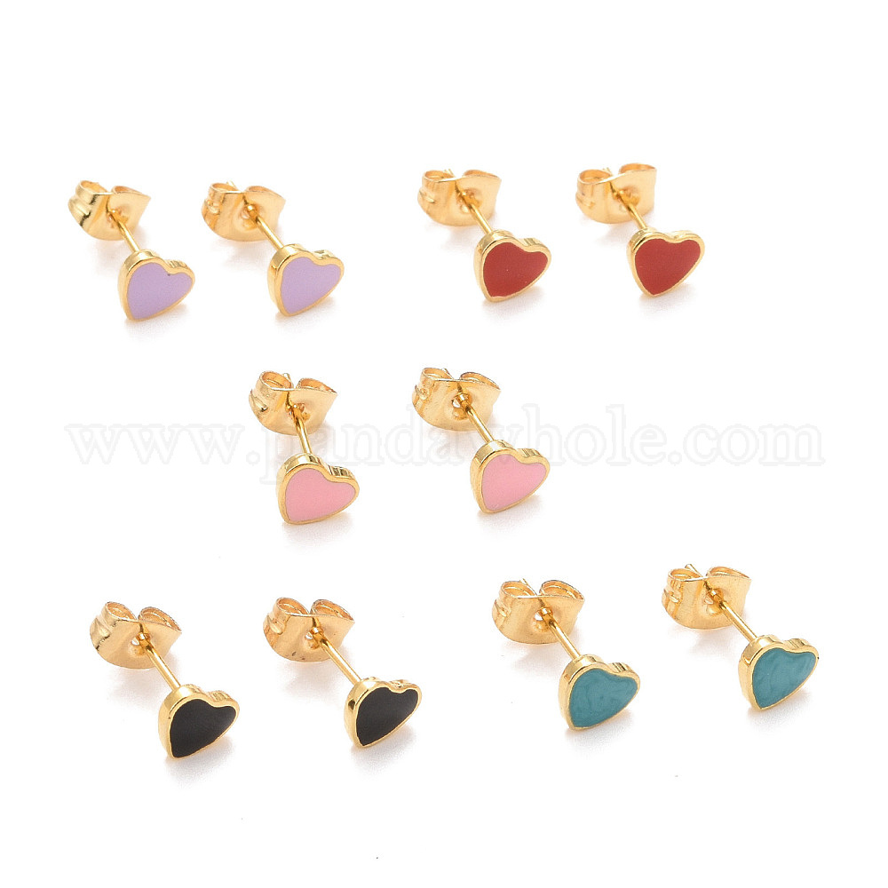 Серьги-гвоздики с эмалевыми сердечками, 304 серьги из нержавеющей стали с 316 булавками из хирургической нержавеющей стали для женщин