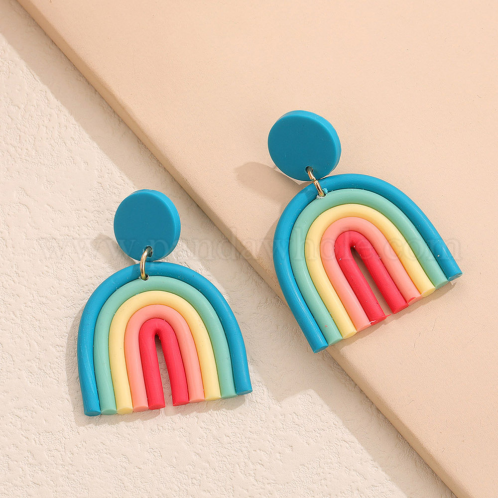 • Темно-бирюзовый Серьги-гвоздики из полимерной глины в форме арки для женщин, темные бирюзовый, 60x40 мм