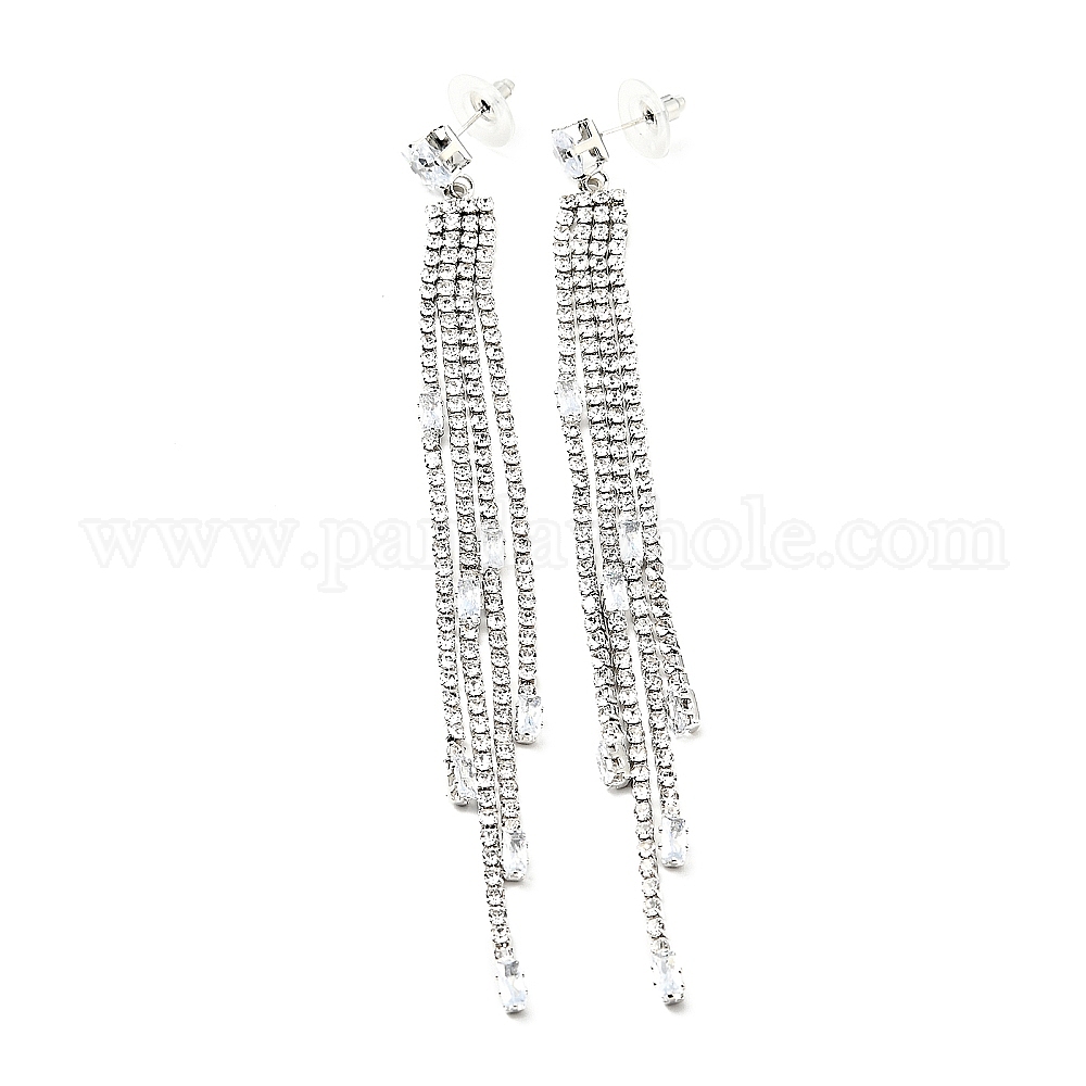 Длинные серьги-гвоздики с кисточками из прозрачного кубического циркония и кристаллов страз, латунные серьги с 925 булавками из стерлингового серебра для женщин