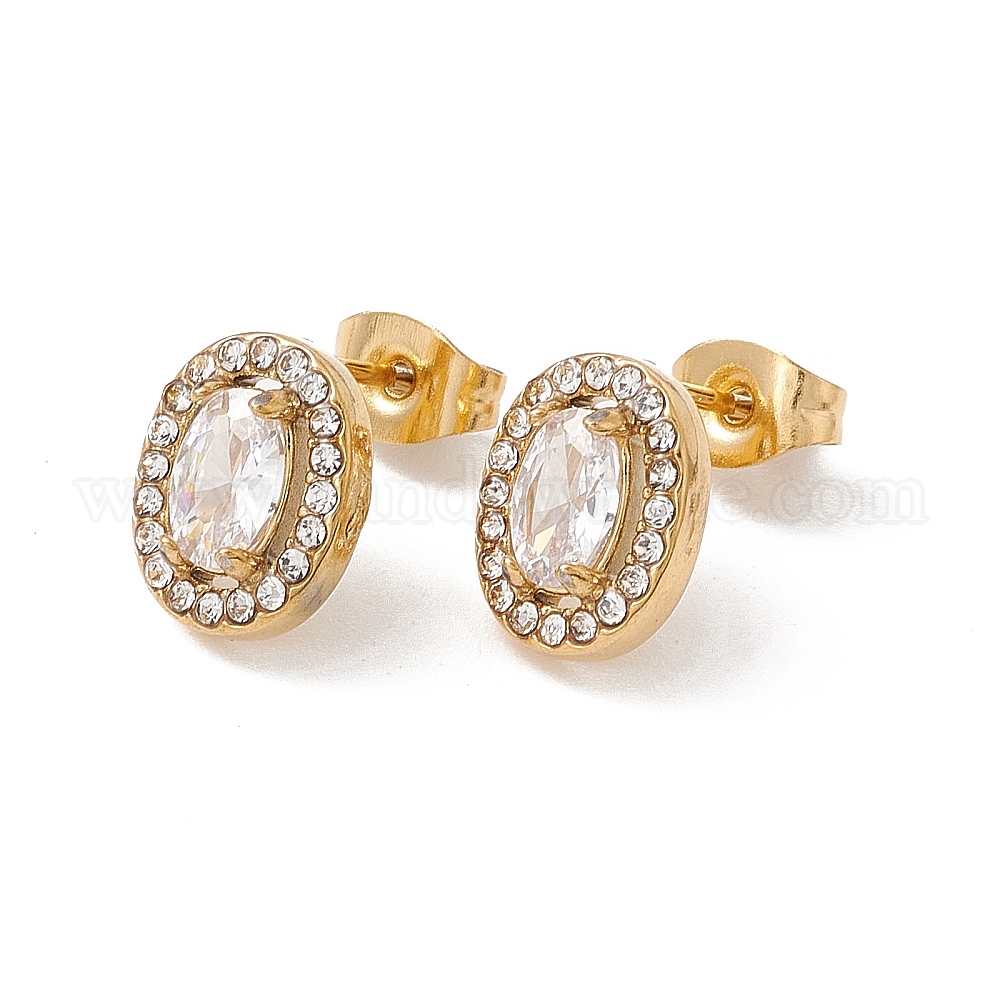 Овальные серьги-гвоздики с фианитами и стразами, 304 женские украшения из нержавеющей стали