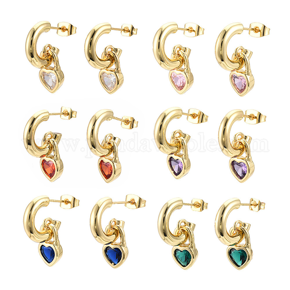 Серьги-гвоздики с кубическим цирконием в форме сердца, серьги-кольца из настоящей позолоченной латуни 18k для женщин, без никеля (02FBJ9)