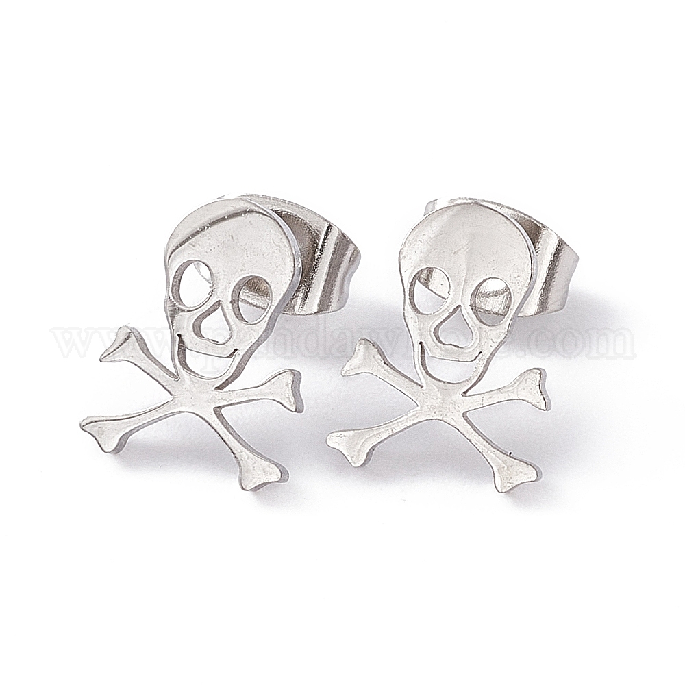 304 крошечные серьги-гвоздики из нержавеющей стали с полым черепом для женщин