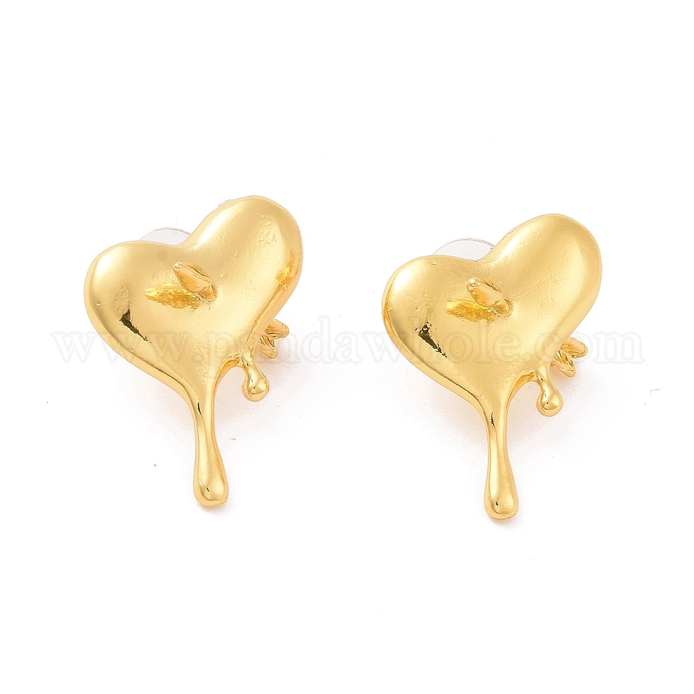 • Золотой Серьги-гвоздики из сплава с сердцем и стрелой, с 925 стерлинговым серебром, золотые, 27.5x23.5 мм, штифты : 0.7 мм
