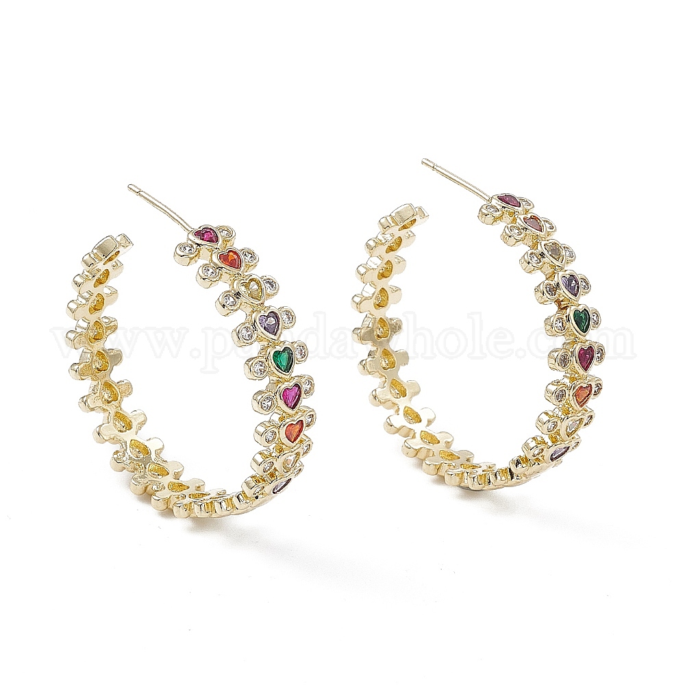 • Настоящее золото 18K Серьги-гвоздики из латуни с реечным покрытием, микро паве красочные серьги с кубическим цирконием для женщин, кольцо с сердцем, без свинца и без кадмия, реальный 18 k позолоченный, 42x39x8 мм, штифты : 1 мм