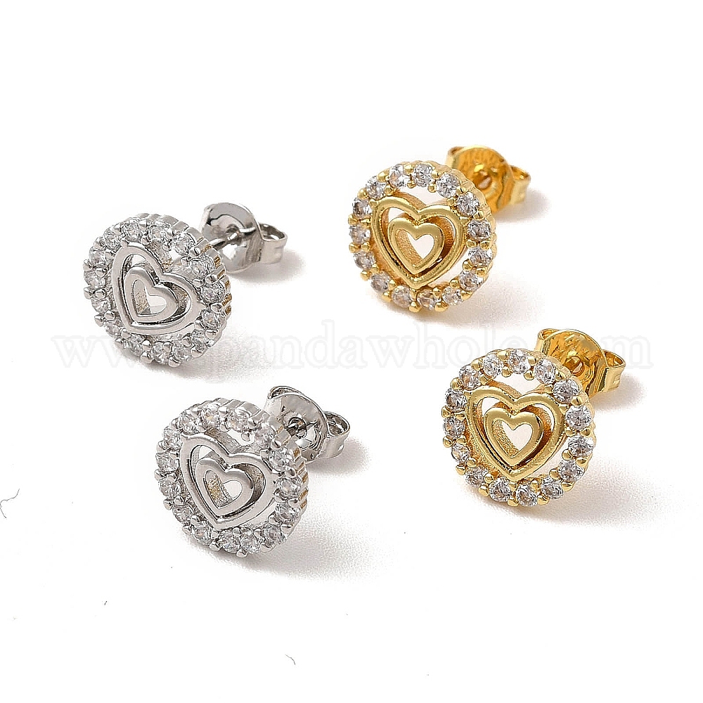 Серьги-гвоздики в форме сердца из прозрачного кубического циркония, стеллаж для латунных украшений для женщин, без кадмия и без свинца (02GXGM)