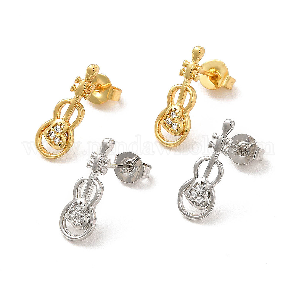 Серьги-гвоздики со скрипками из латуни с микропаве из прозрачного кубического циркония, долговечный, без свинца и без кадмия