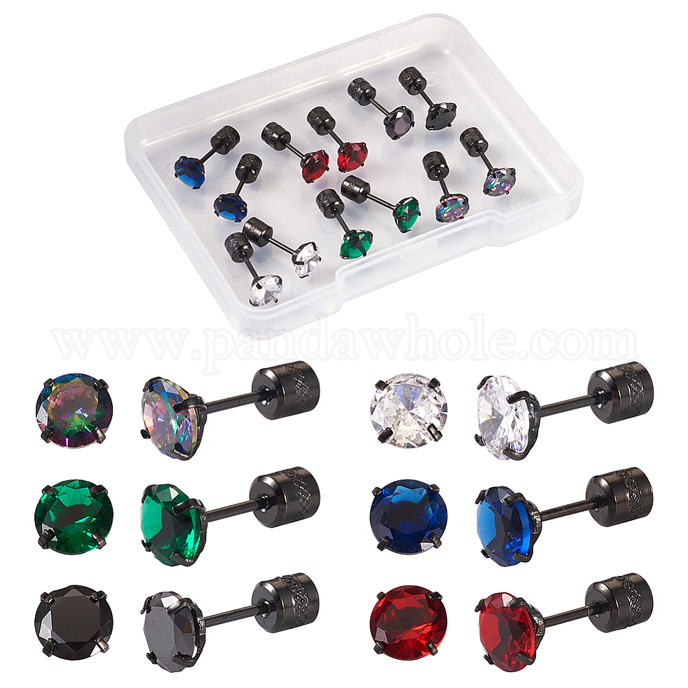 12 шт. 6 серьги-гвоздики с кубическим цирконием и бриллиантами разных цветов, ювелирные изделия из нержавеющей стали для женщин