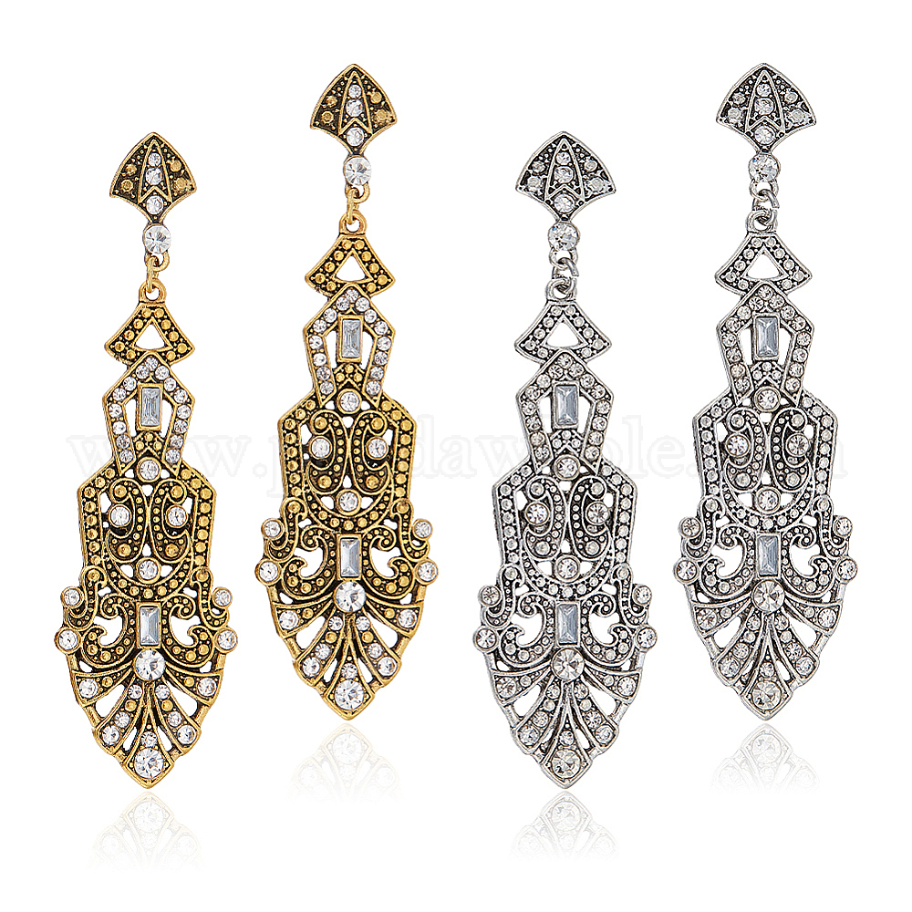 • Античный Серебрянный & Античный Золотой 2 пары 2 цвета серьги-гвоздики в форме капли со стразами, длинные серьги из сплава для женщин, старинное серебро и античный золотой, 76 мм