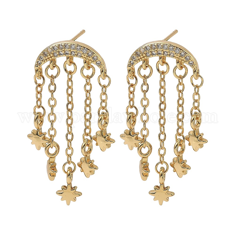 Двойной рог из кубического циркония со звездой серьги-люстры, серьги-подвески с кисточками из настоящей позолоченной латуни 18k для женщин, без кадмия и без свинца
