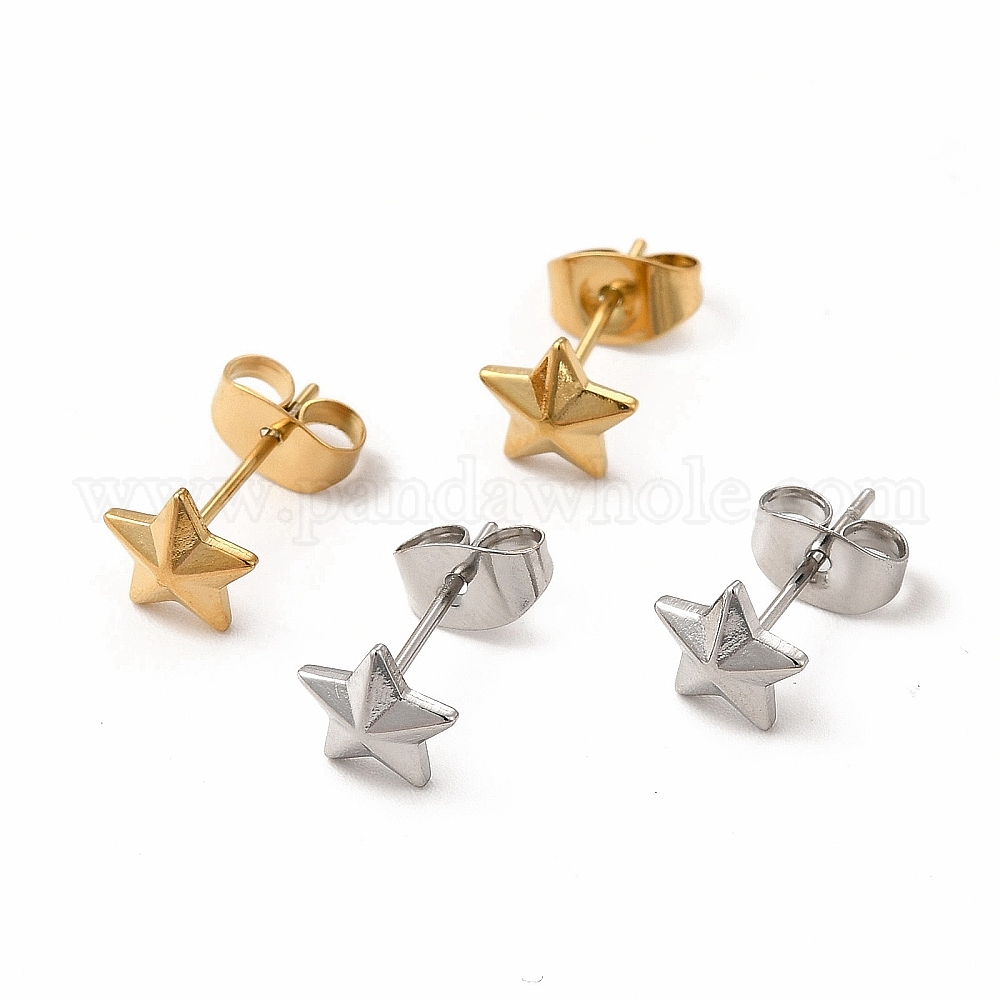 • Нержавеющая Сталь Цвет Не тускнеющие 304 серьги-гвоздики из нержавеющей стали в форме звезды для женщин, цвет нержавеющей стали, 6.5x7 мм, штифты : 0.7 мм