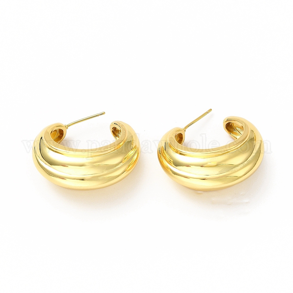 Серьги-гвоздики из латуни с реечным покрытием, без свинца и без кадмия, рифленая серьга полукольцо для женщин