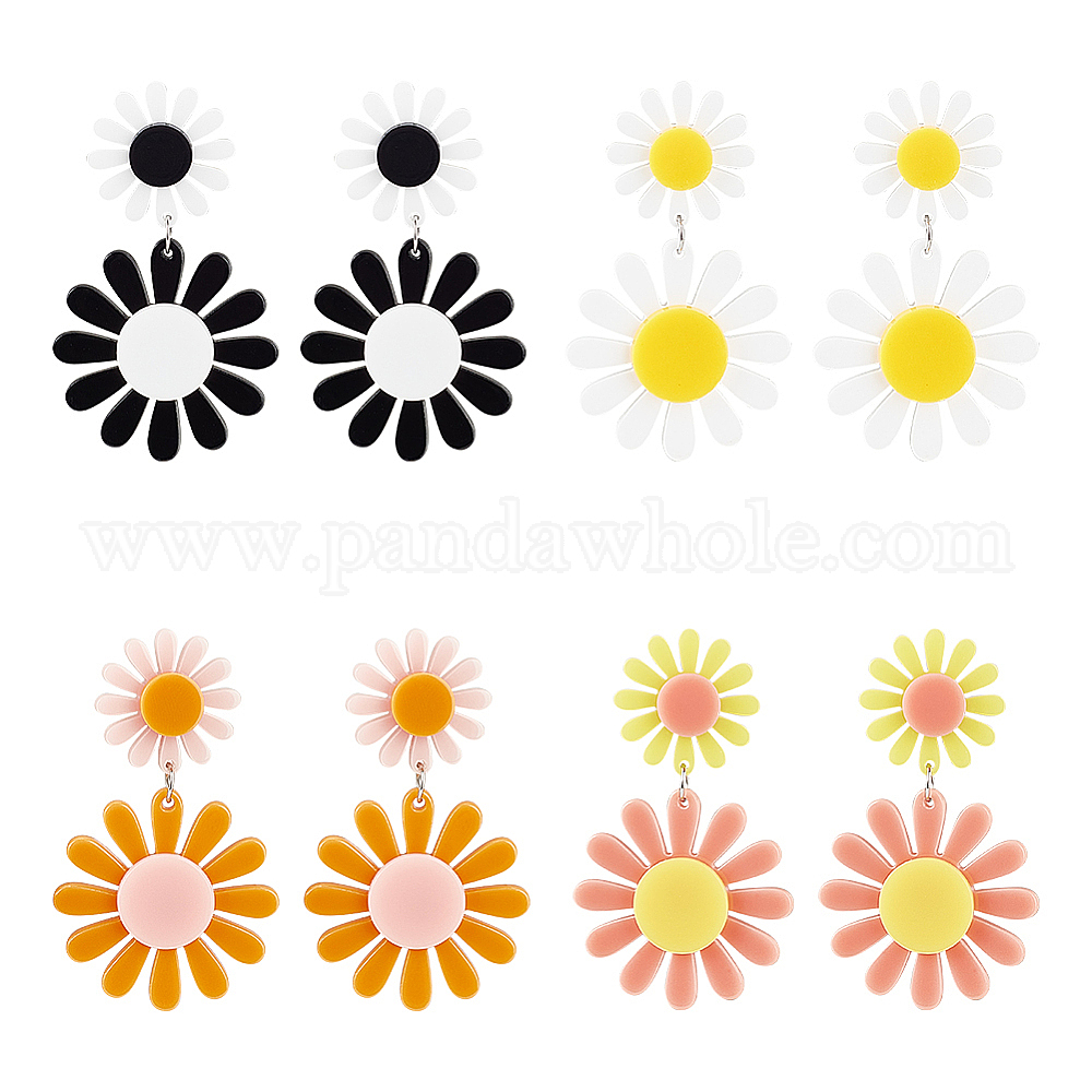 4 пары 4 цвета акриловые серьги-гвоздики в форме подсолнуха, длинные серьги из платинового сплава для женщин (02HGF1)