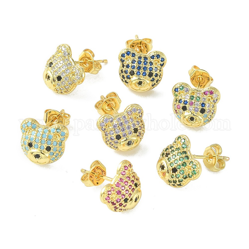 Серьги-гвоздики с кубическим цирконием, настоящие позолоченные украшения из латуни для женщин