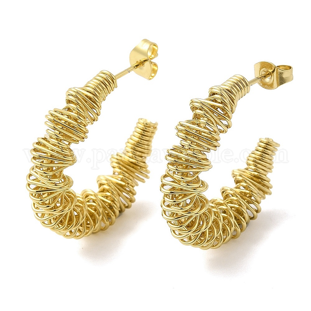 Вакуумное покрытие pvd 201 серьги-гвоздики в форме буквы С из нержавеющей стали с 304 штифтами из нержавеющей стали, проволочные серьги-кольца для женщин