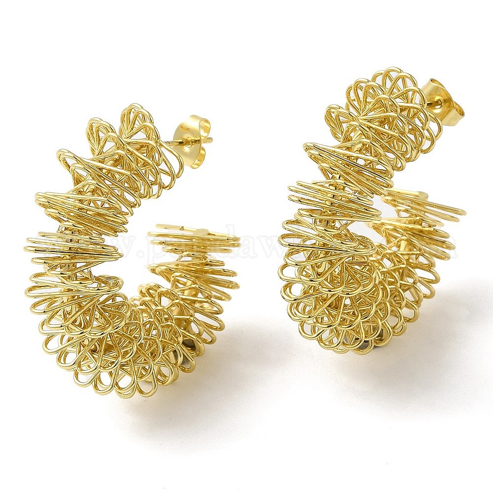Вакуумное покрытие pvd 201 серьги-гвоздики в форме буквы С из нержавеющей стали с 304 штифтами из нержавеющей стали, проволочные серьги-кольца с цветком для женщин