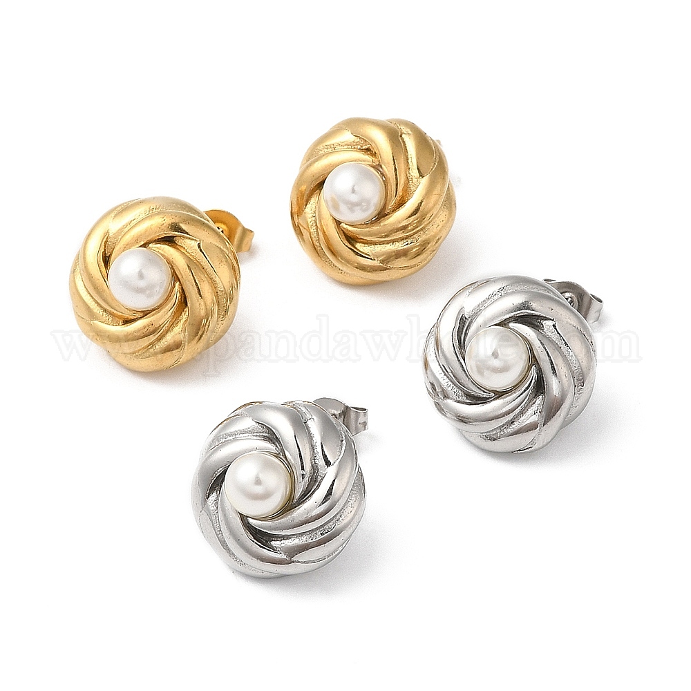 Серьги-гвоздики с пластиковыми жемчужными бусинами и цветами, 304 ювелирные изделия из нержавеющей стали (02JRXJ)