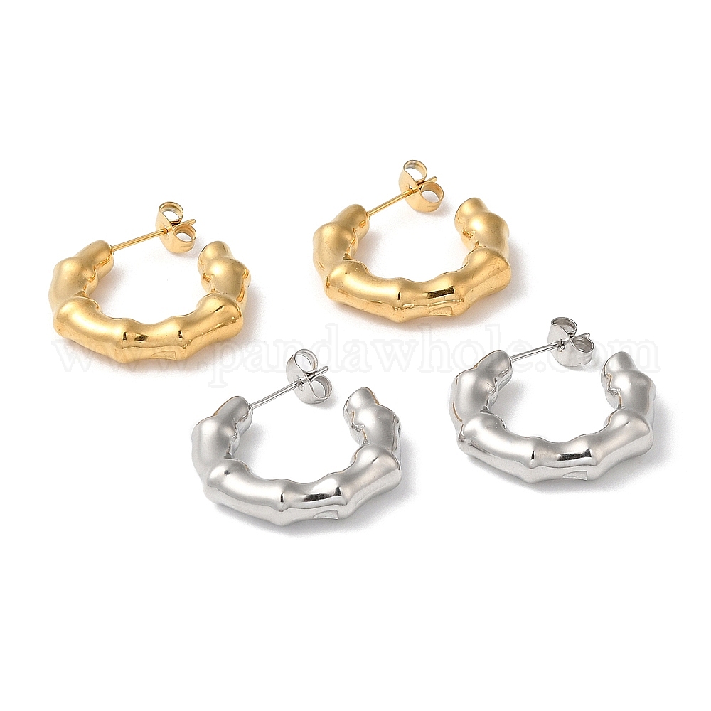 304 серьги-гвоздики из бамбукового кольца из нержавеющей стали, серьги-кольца