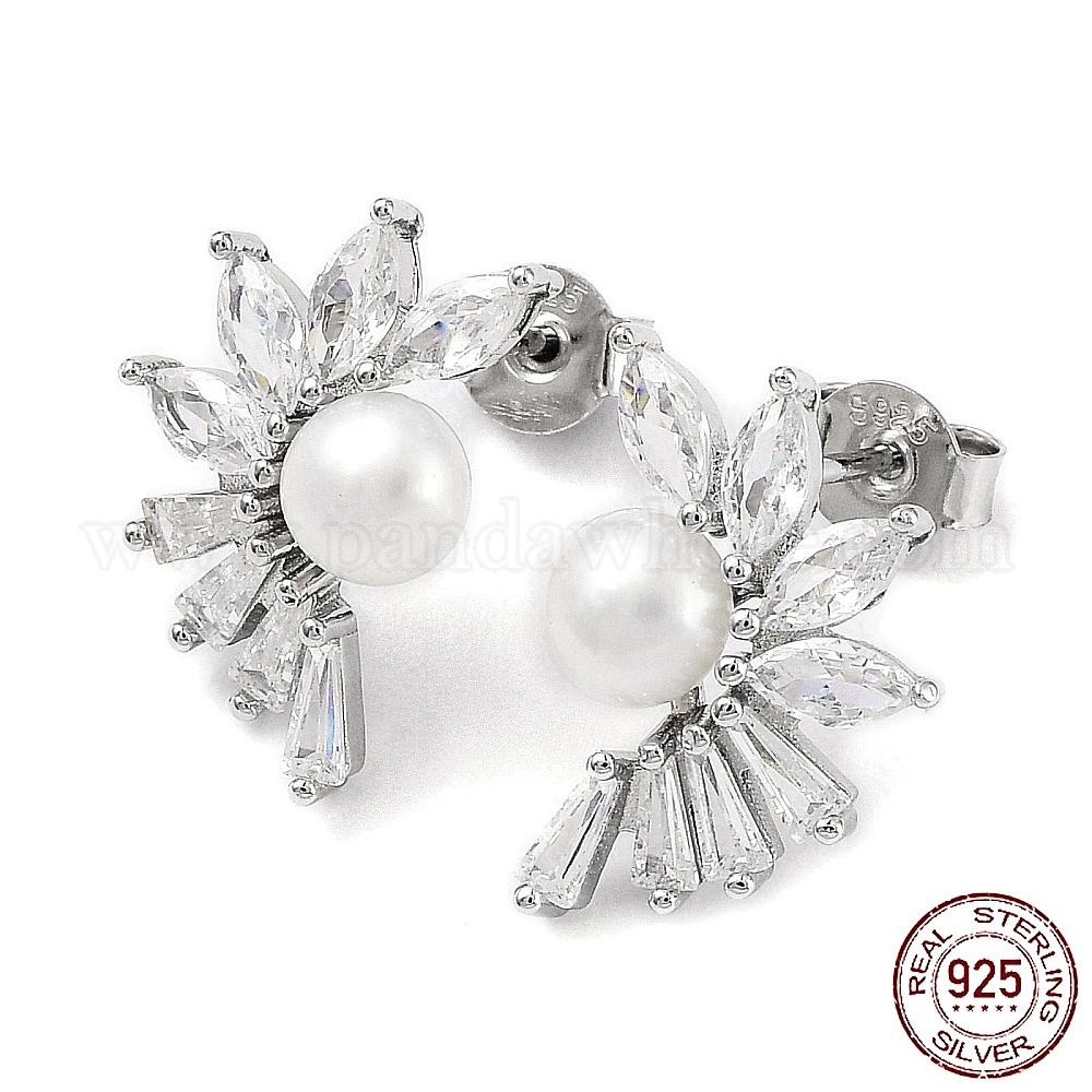 • Платина Серьги-гвоздики из кубического циркония с защитой от потускнения и натуральным жемчугом, женские серьги из стерлингового серебра 925 с родиевым покрытием, платина, 17x11.5 мм