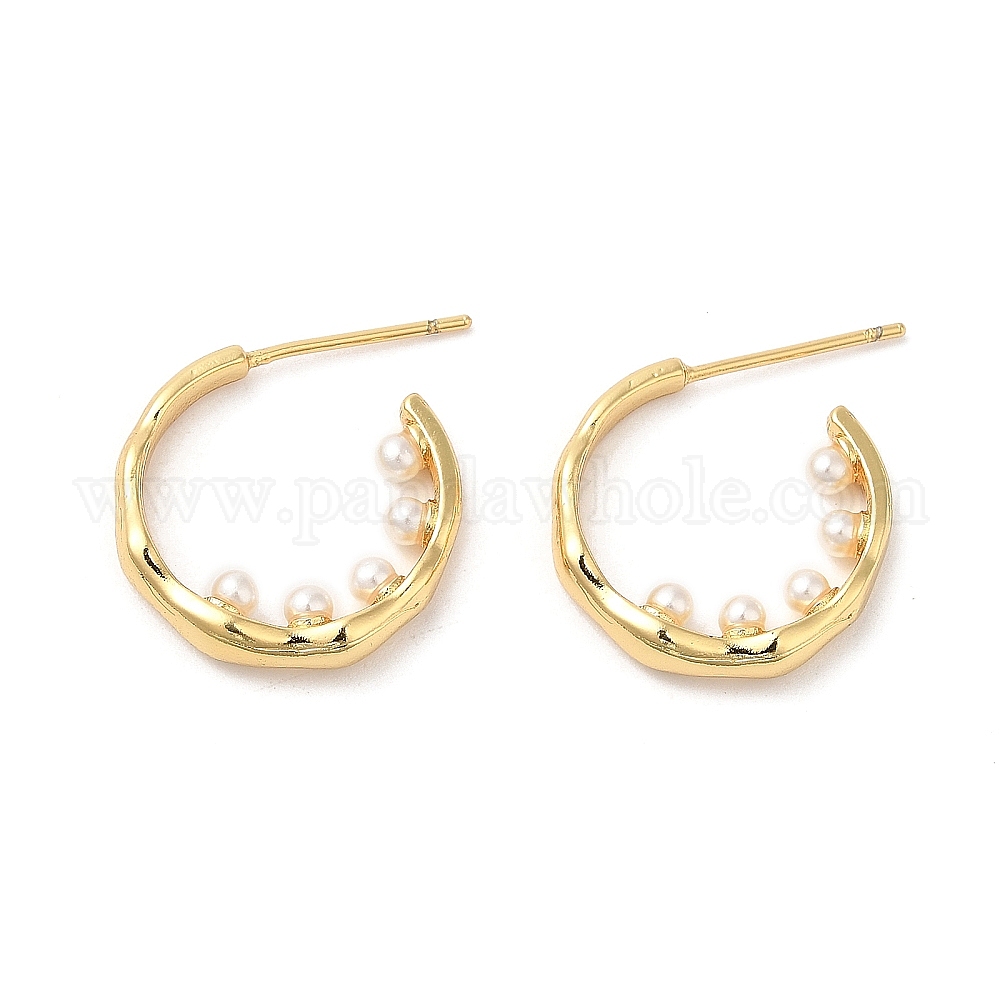 Серьги-гвоздики из латуни с пластиковым жемчужным бисером, серьги-кольца, без свинца и без кадмия (02K5FG)