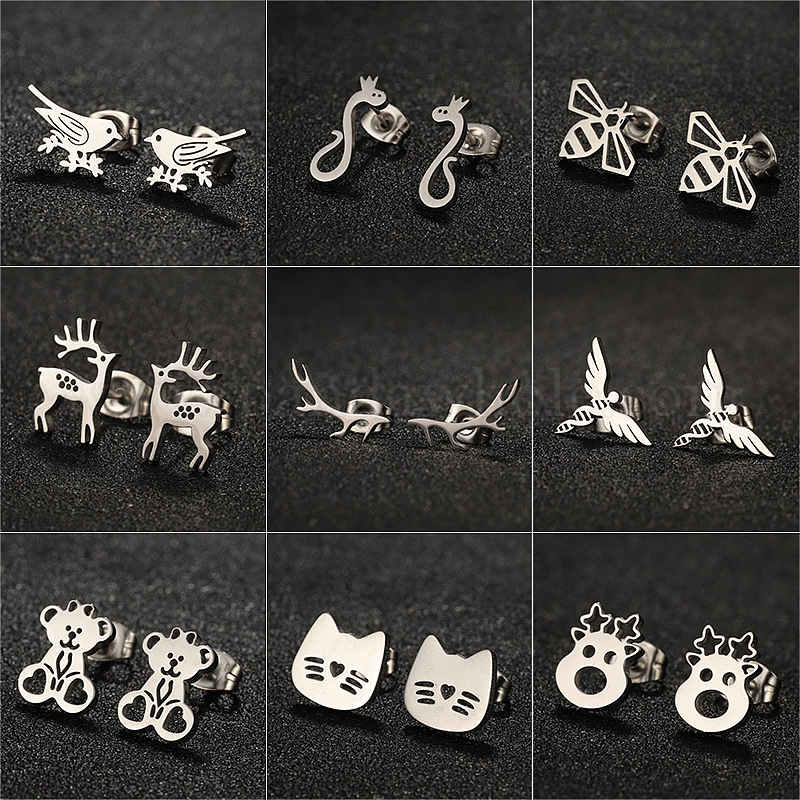 Очаровательные серьги-гвоздики из нержавеющей стали с изображением животных и птиц, дизайн с цветами и пчелами – минималистичные модные украшения для женщин