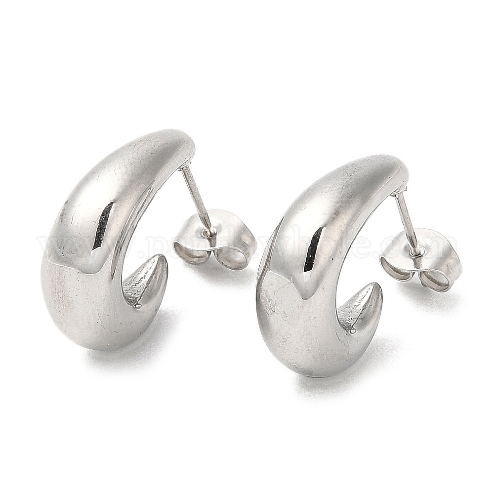 • Нержавеющая Сталь Цвет Не тускнеющие 304 серьги-гвоздики из нержавеющей стали, серьги-кольца, цвет нержавеющей стали, 17x6 мм