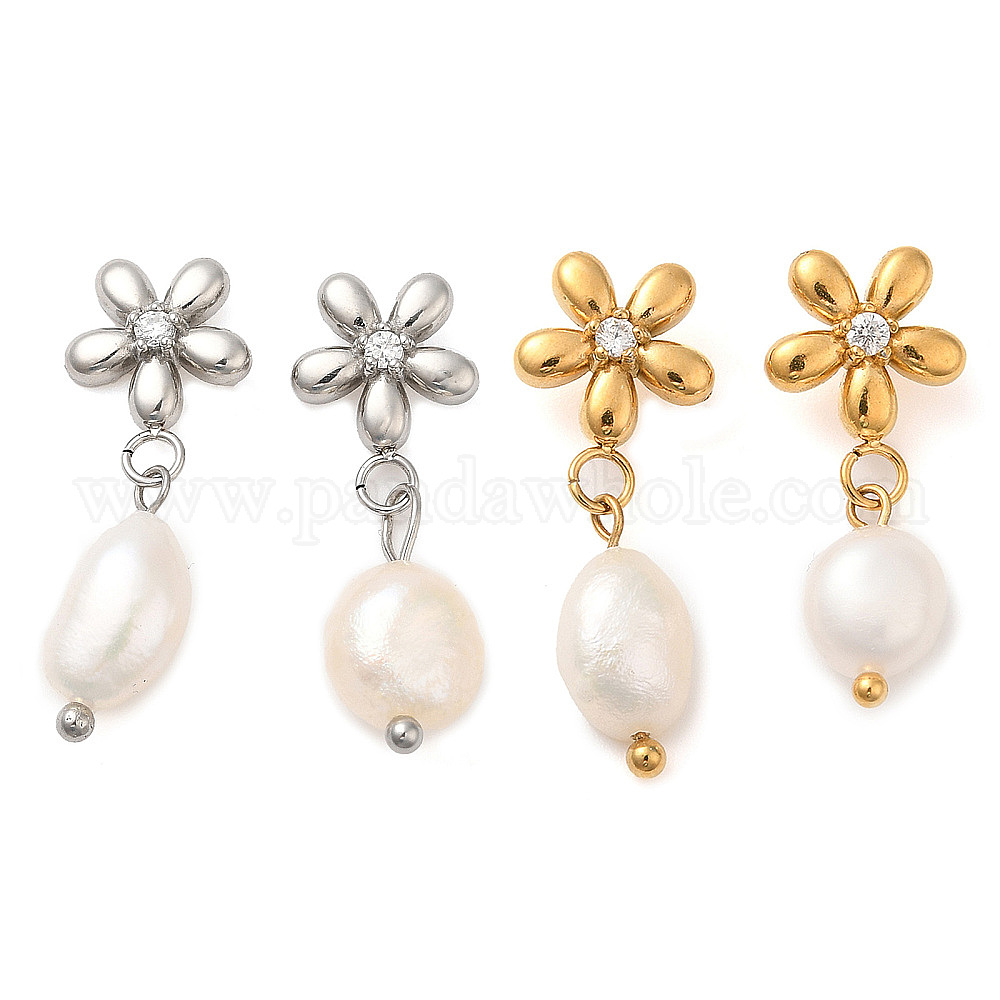 304 Серьги-гвоздики из нержавеющей стали с цветком и стразами, серьги Дорп с натуральным жемчугом