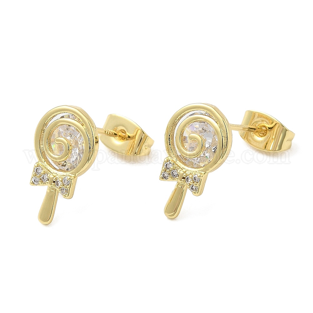 Серьги-гвоздики в форме леденцов с кубическим цирконием, латунные серьги для женщин