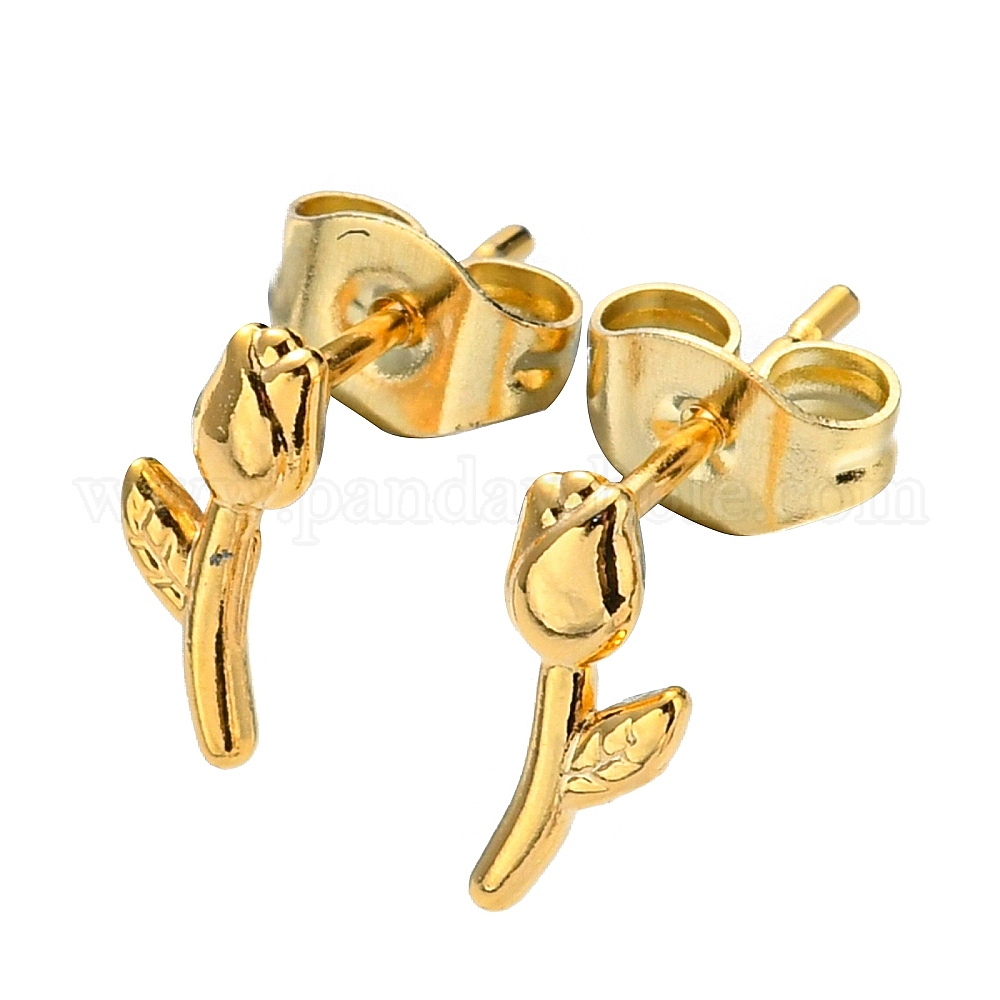 • Золотой Вакуумное покрытие pvd 304 серьги-гвоздики из нержавеющей стали для женщин, цветок розы, золотые, 9x4 мм