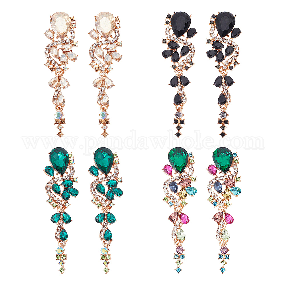 4 пары 4 цвета стразы слеза цветок серьги-гвоздики подвески, Длинные серьги-капельки из сплава легкого золота со шпильками 316 из нержавеющей стали