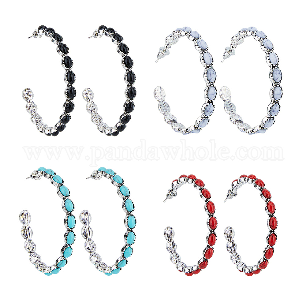 4 пары 4 цвета сплава кольца серьги-гвоздики, серьги-полукольца с бусинами из синтетической бирюзы