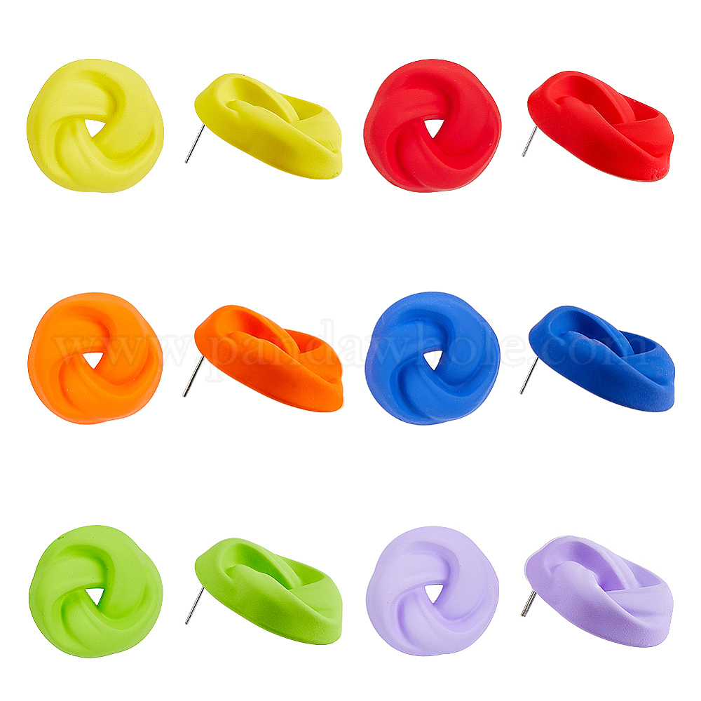6 пары 6 цветные акриловые серьги-гвоздики с распылением краски и стальными железными штифтами, круглый узел