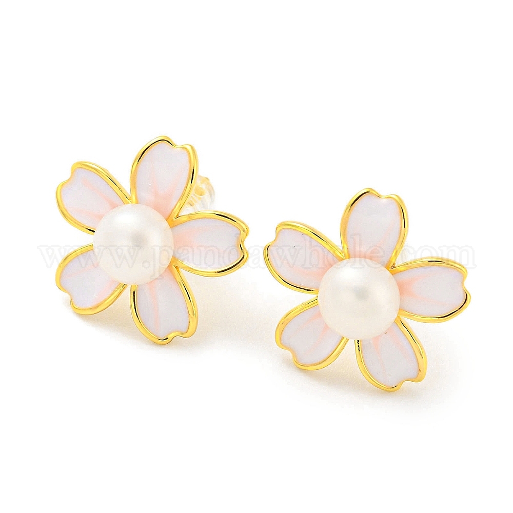 Серьги-гвоздики из латуни с натуральным жемчугом, с 925 штырями стерлингового серебра