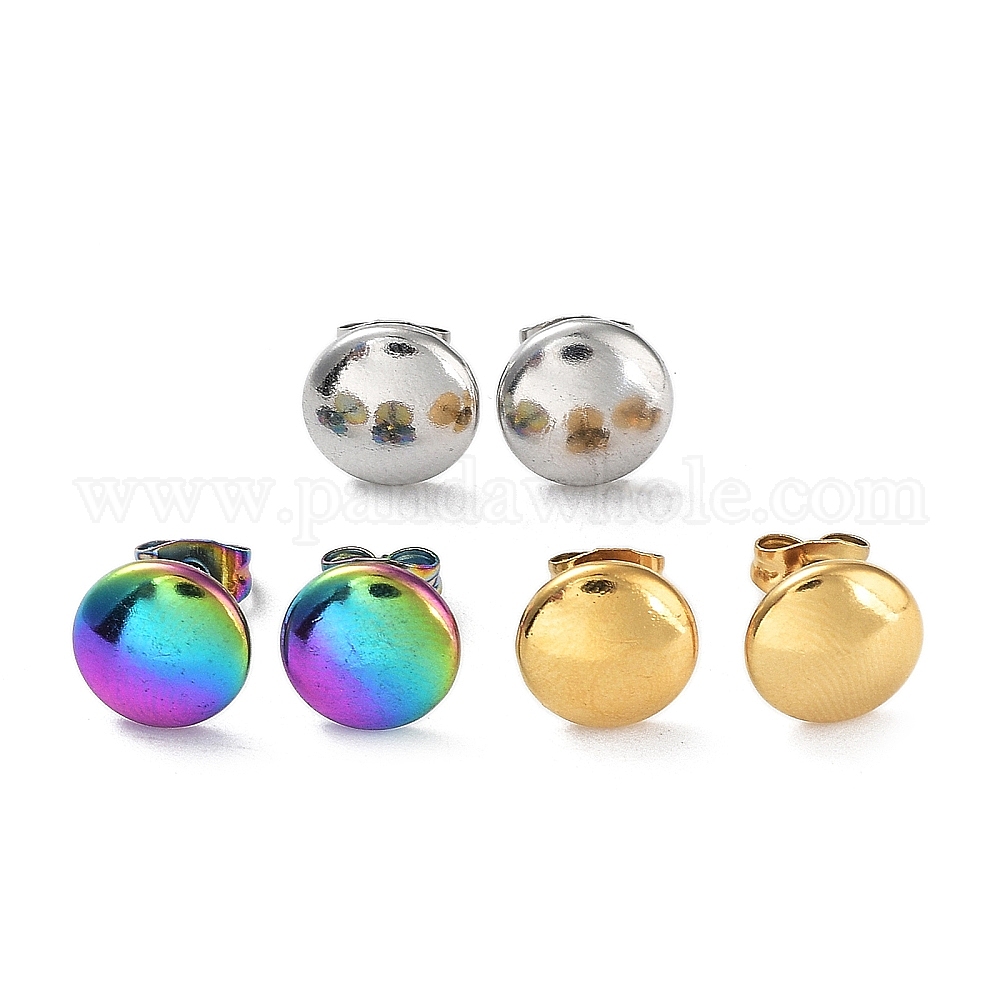 • Нержавеющая Сталь Цвет Не тускнеющие 304 плоские круглые серьги-гвоздики из нержавеющей стали для женщин, цвет нержавеющей стали, 10 мм