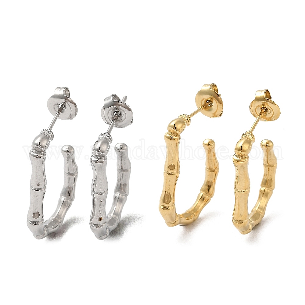 304 серьги-гвоздики из бамбуковой палочки из нержавеющей стали, овальные серьги-полукольца (02PBJT)