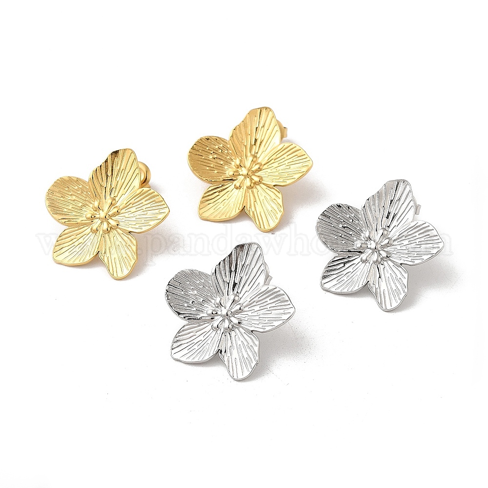 • Нержавеющая Сталь Цвет Не тускнеют 304 серьги-гвоздики из нержавеющей стали, цветок, цвет нержавеющей стали, 25x25 мм