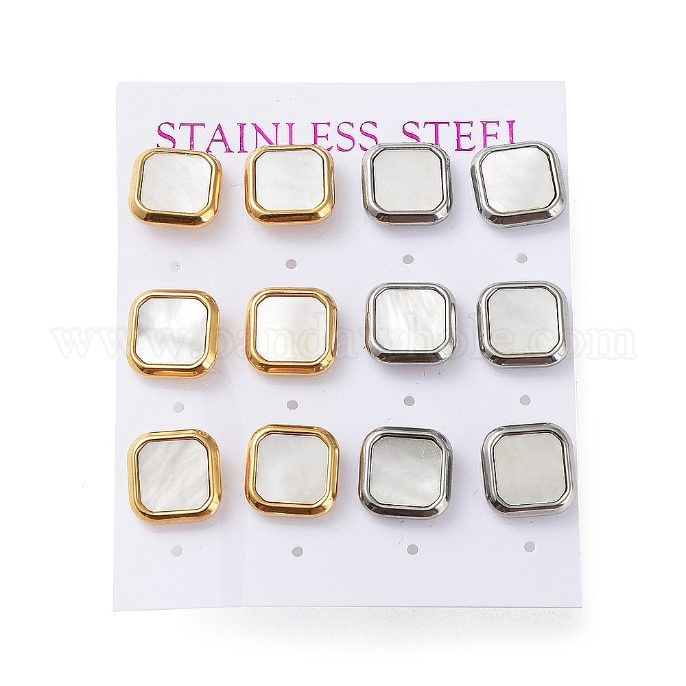 6 пара 2 цветные квадратные серьги-гвоздики из натуральной ракушки, 304 серьги нержавеющей стали
