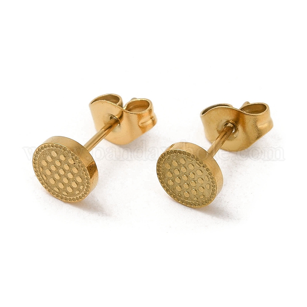 Ионное покрытие (ip) 304 плоские круглые серьги-гвоздики с текстурированной нержавеющей сталью