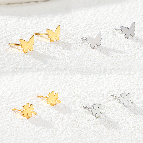 201 серьги из нержавеющей стали, бабочка и клевер