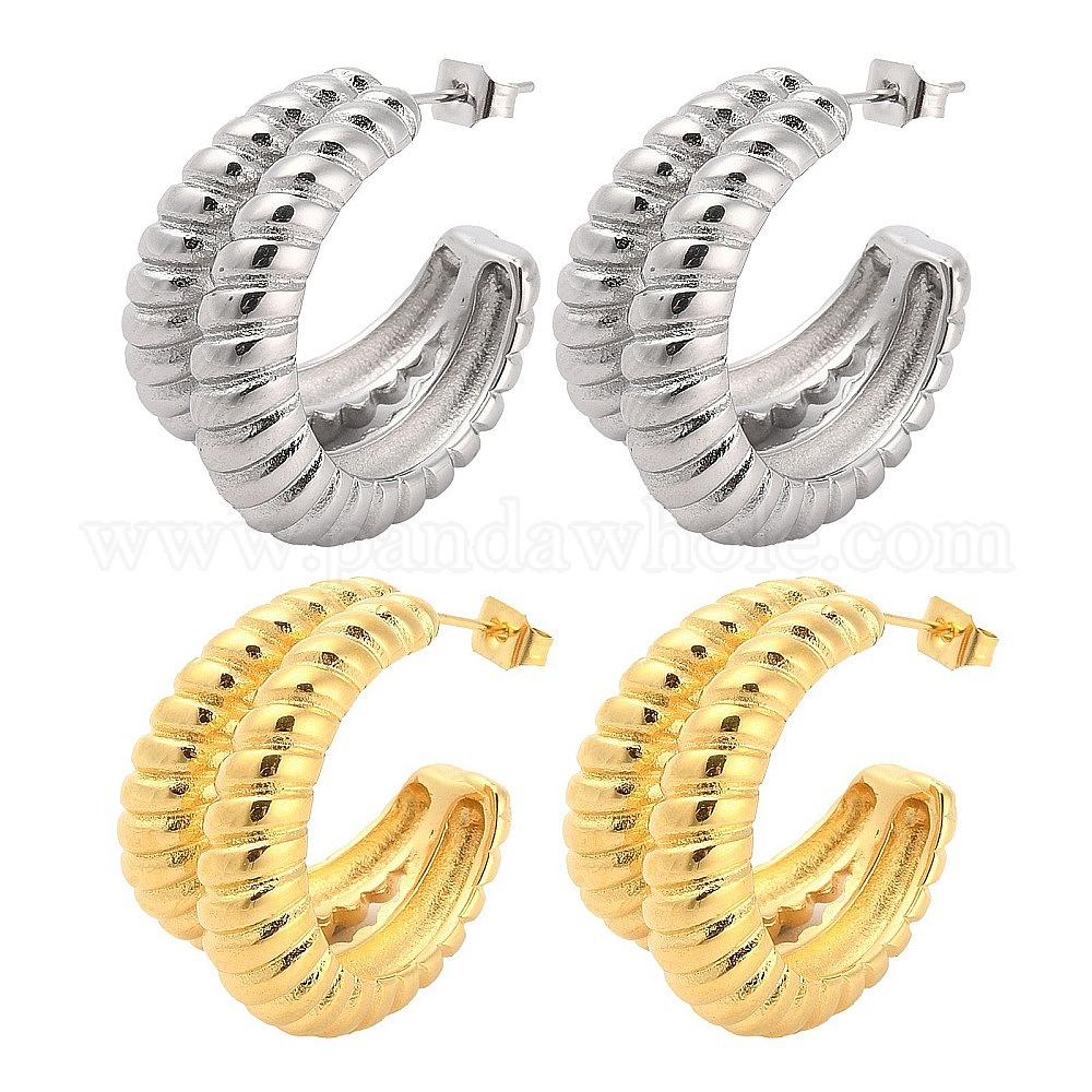 • Золотой Вакуумное покрытие pvd 304 серьги-гвоздики из нержавеющей стали, сплит серьги, серьги-кольца, золотые, 25x16 мм