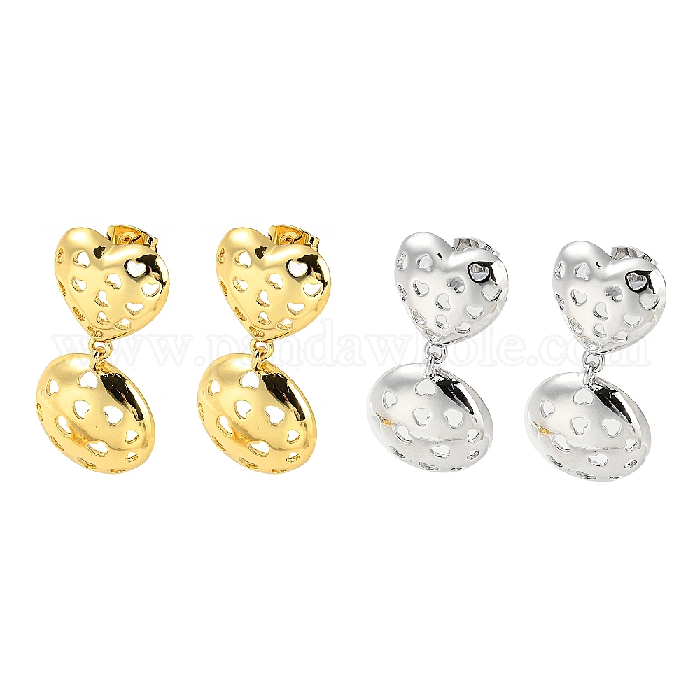 Латунные серьги-гвоздики с полым сердцем, долговечный, без кадмия и без свинца (02PWQR)