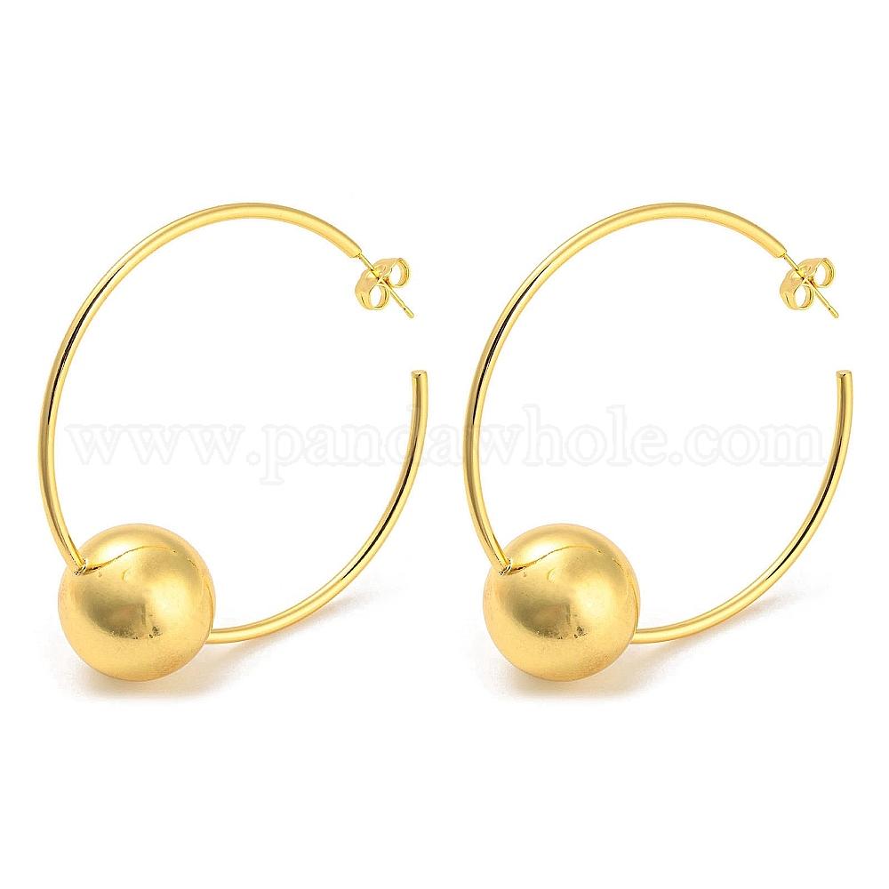 Серьги-гвоздики из латуни с круглыми бусинами, большие серьги-кольца в форме полукольца, долговечный, без кадмия и без свинца (02PWR8)