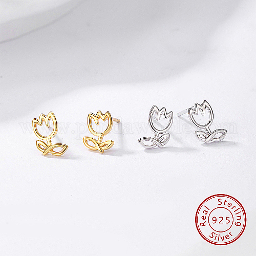 925 стерлингового серебра серьги стержня, женские серьги с цветком тюльпана
