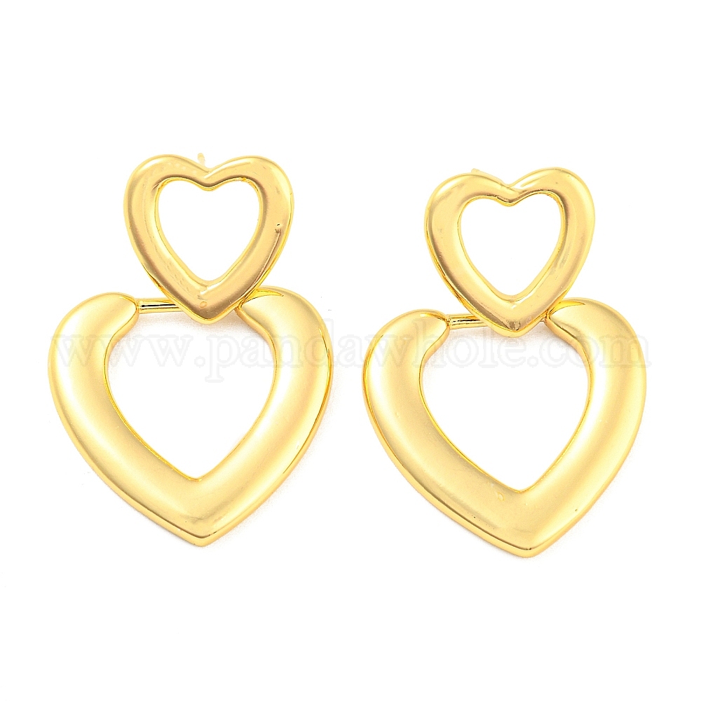 Серьги-пусеты из латуни с полым сердцем и подвесками в стойке, долговечный, без свинца и без кадмия