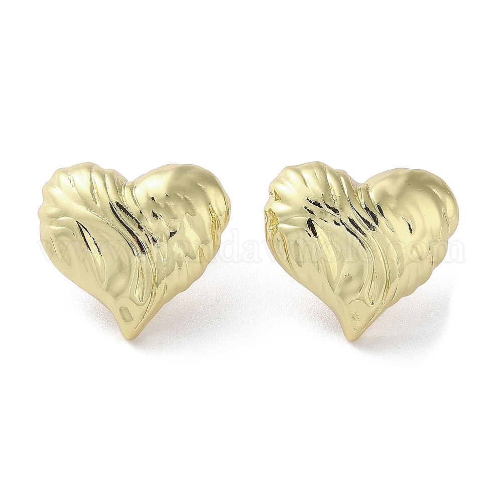 Серьги-пусеты из латуни с текстурированным сердечком и покрытием стойки, без свинца и без кадмия