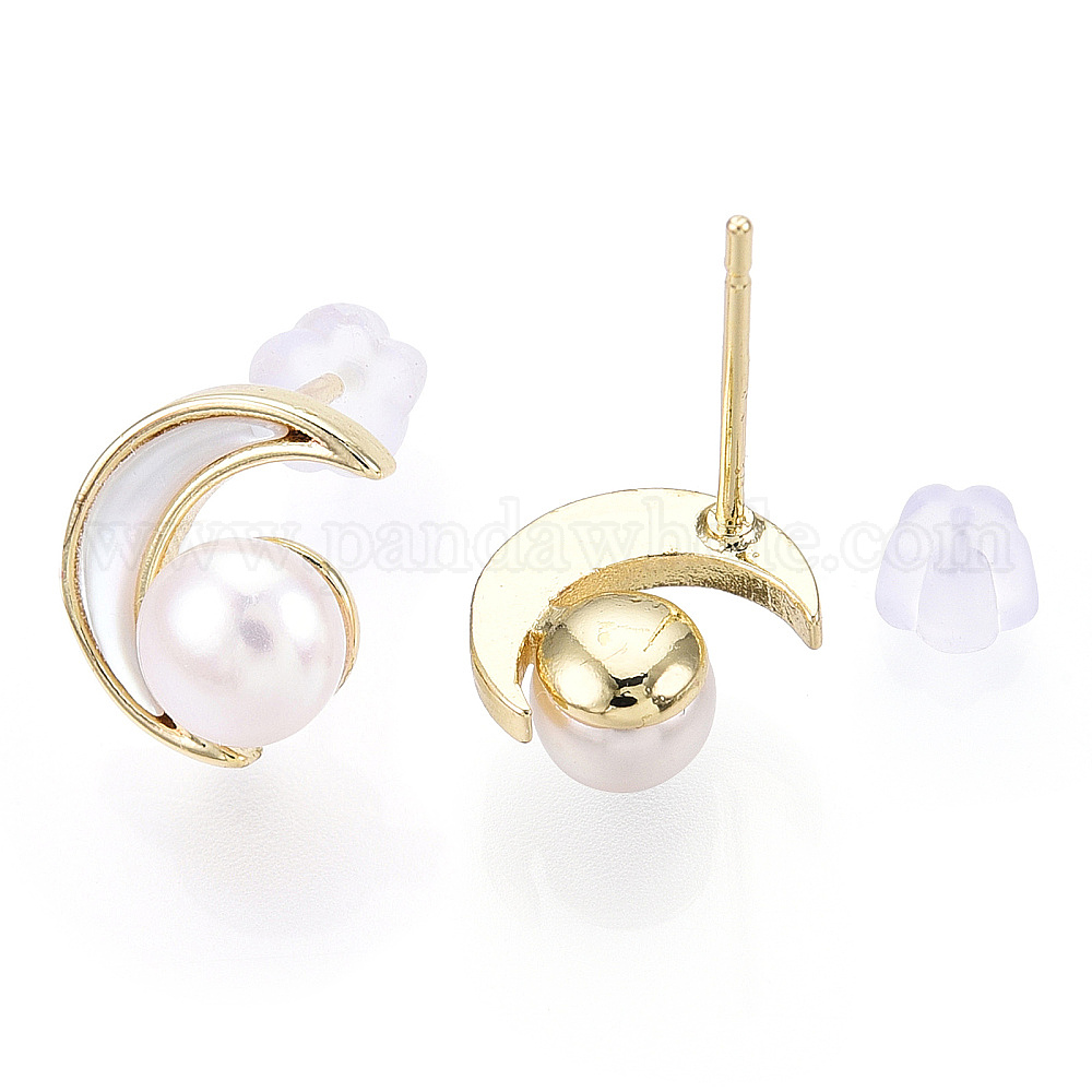 Серьги-гвоздики в форме полумесяца из натуральных белых ракушек и жемчуга, серьга из латуни со шпильками из стерлингового серебра 925