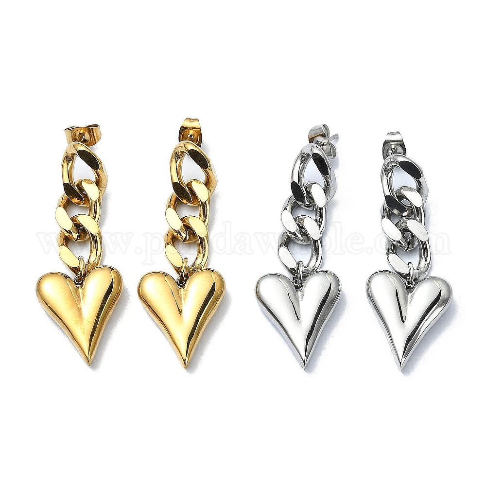304 серьги-гвоздики в форме сердца из нержавеющей стали, серьги-подвески с цепочками-панцирками