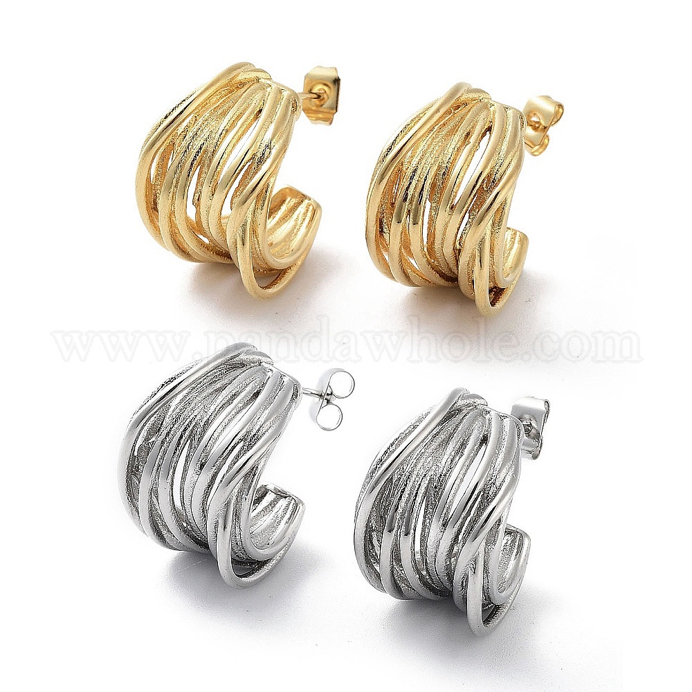 • Золотой Вакуумное покрытие pvd 304 серьги-гвоздики из нержавеющей стали, сплит серьги, серьги-кольца, золотые, 19.5x12.5 мм