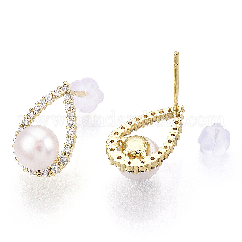 Натуральный жемчуг серьги, Серьги из латуни Teadrp с микропаве и прозрачными циркониями со шпильками из стерлингового серебра 925